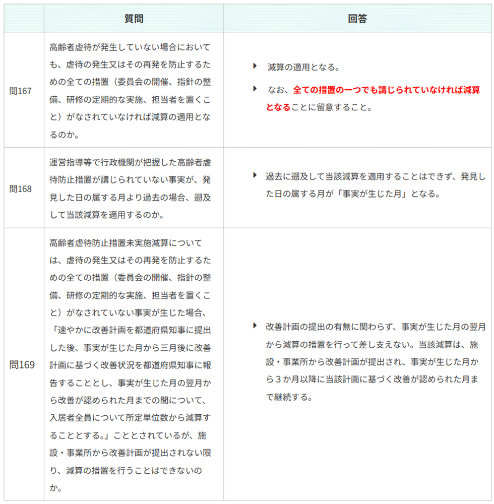 高齢者虐待防止措置未実施減算は、業務継続計画未策定減算とは異なり、過去にさかのぼって減算が適用されることはありません。