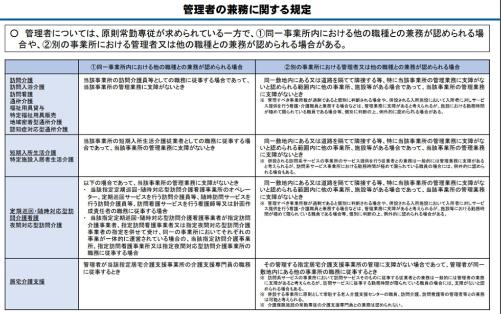 介護報酬改定のポイント③管理者の責務及び兼務範囲の明確化等