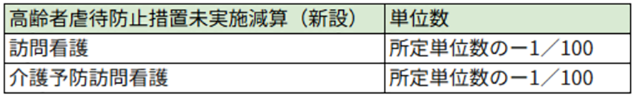利用者の人権の擁護、虐待の防止等をより推進する観点から、虐待の発生又はその再発を防止するための措置が講じられていない場合の減算が新設されました。