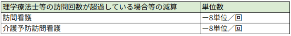 以下の要件を満たしている場合、理学療法士・作業療法士・言語聴覚士による訪問1回につき8単位が減算となります。